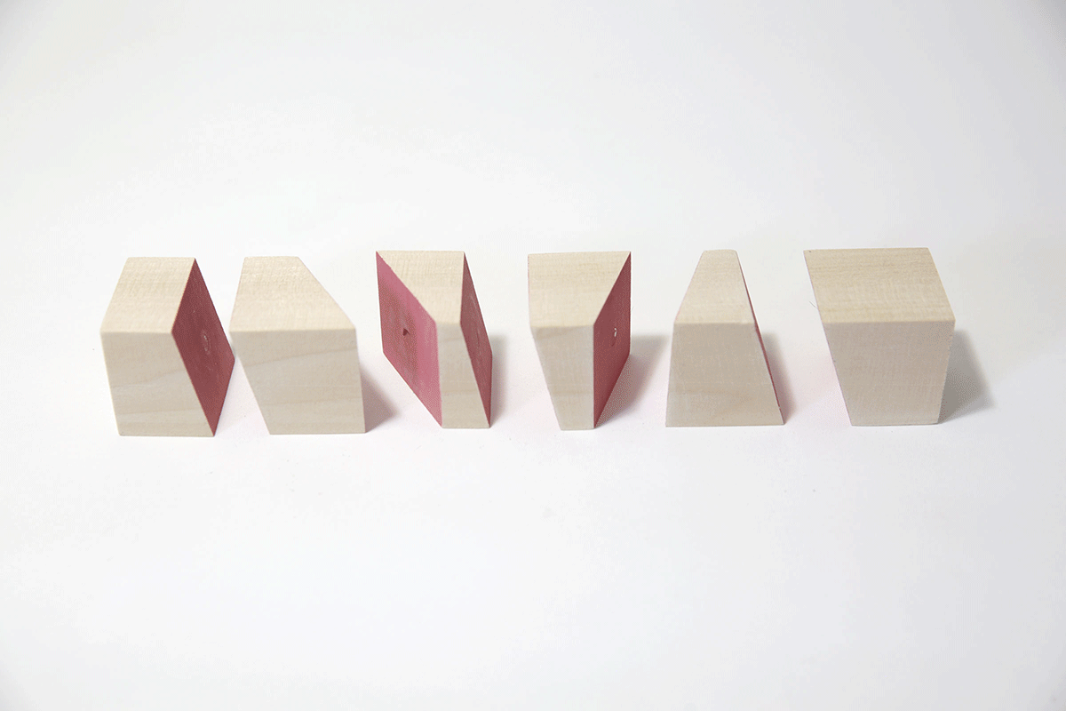 These toys are a series of poplar blocks that have been split into angled forms. These forms can be twisted, separated, offset into sheered, stacked forms and reassembled into blocks again. Part puzzle, part sculpture, part fidget toy.